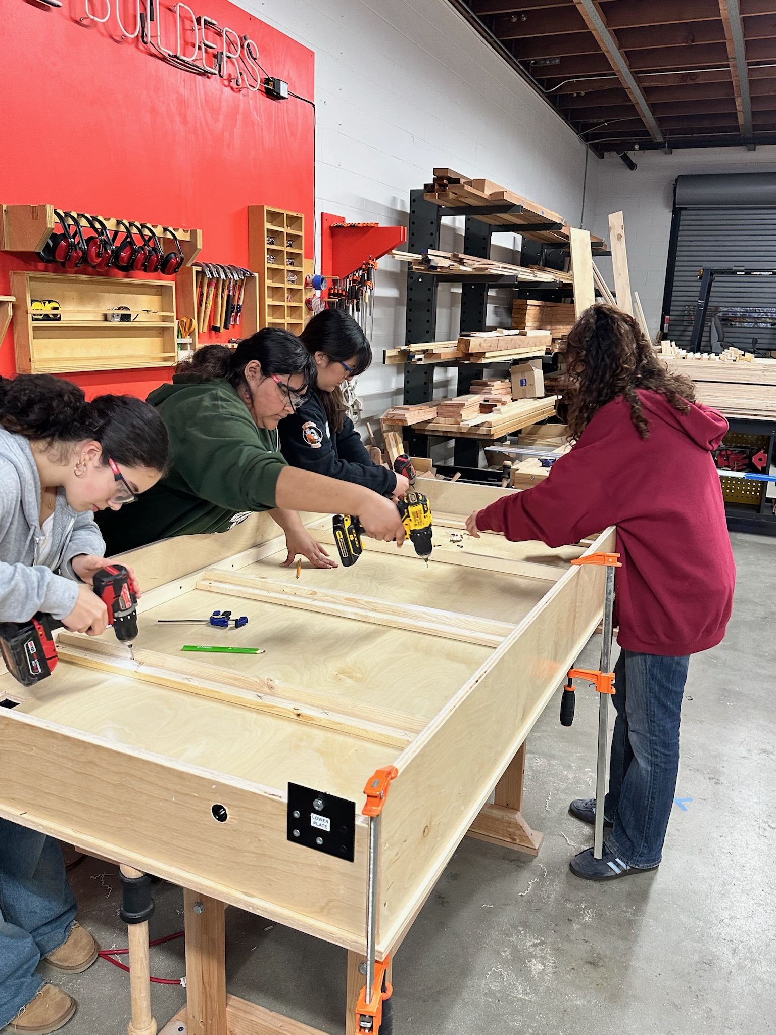 Construction + Community was created as a school-year program for 9th-12th grade girls and a complement to our Young Women’s Design and Building Institute. The course, taking place in three 8-week sessions over the school year, invites high school girls and gender-expansive youth with an interest in architecture, construction trades, design, and engineering, to learn technical construction skills in the context of community service. The program is free for participants, and we also build our projects pro-bono for community clients, focusing on the power of applying our construction skills towards the mutual aid and benefit of our entire community. For students interested in pursuing college pathways or careers in STEM, the trades, design, or architecture, this course is a hands-on exploration of what it means to physically construct the environments in which our community thrives. Using personal power and power tools, we are also building our community, one project at a time.