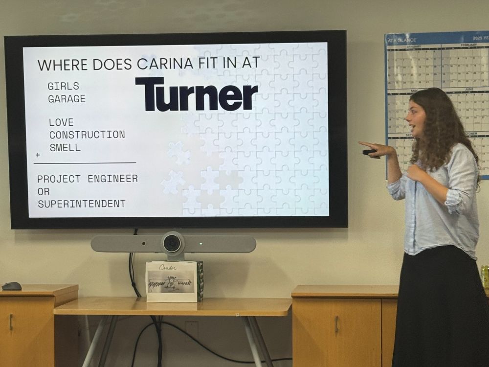 Thanks to our alumni network (spearheaded by Director of Development Kristy Higares), Carina gained more real-world experience this summer through an externship with Turner Construction. While at Turner, she learned about different aspects of the construction industry, from procurement to safety, and visited current construction sites. The experience affirmed what Carina already suspected—she wanted to work on a job site. “I couldn’t sit at a desk all day when the alternative is seeing a project come to life,” she says.